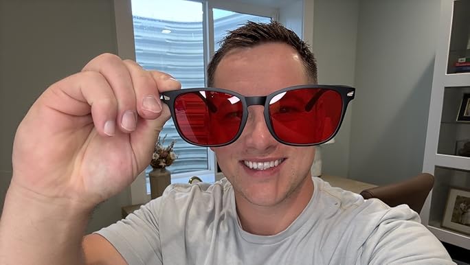 - Red lenses: Maximum blue light protection - ideal for evenings and winding down before sleep, blocking almost 100% of blue and green light.